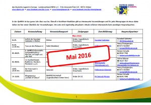 Ein Blick auf die Termine des Landesverbandes NRW der djo-Deutsche Jugend in Europa zeigt: Der Mai hat es in sich! Es gibt viele Veranstaltungen und für jeden ist etwas dabei.