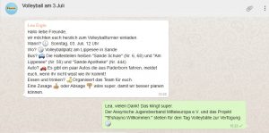 Melde Dich bei Nora Liebetreu. Sie leitet das Projekt B’shayno.Willkommen. und kann Dir alle Fragen zum Volleyball-turnier und zu den vielen anderen coolen Aktionen und Events rund um das Projekt beantworten. Schreib ihr einfach per Whatsapp: 0176 31704553