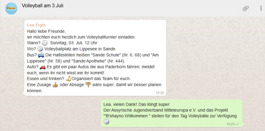 Du hast Lust Volleyball zu spielen? Und möchtest andere assyrsiche/aramäische Jugendliche kennenlernen? Dann bist Du bei unserem Volleyballturnier am 3. Juli ab 12 Uhr auf dem Volleyballplatz Lippesee in Sande genau richtig.