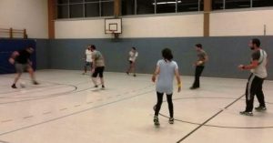 Alle, die beim ersten Mal dabei waren, freuen sich schon auf den nächsten Mittwoch, denn in der Halle sind die sportlichen Möglichkeiten groß. Dieses Mal starteten die Jugendlichen mit Fußball. In drei gemischten Teams und einem kleinen Turnier ermittelten die jungen Kickenden die beste Mannschaft. Danach gab es Brennball, wo sich zwei Teams gegenüber standen. Den Abschluss des Abends bildete eine Runde Basketball. Das von nun an jeden Mittwoch stattfindende Treffen erfolgt im Rahmen des Projekts „Jugendverbandsarbeit mit jungen Geflüchteten“, das aus Mitteln des Landes Nordrhein-Westfalen gefördert wird.