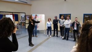 Teil des ersten Parts der zweiteiligen Seminarreihe mit Praxisteil war außerdem konkrete Ideen für ehrenamtliches Engagement zu entwickeln. Dazu wurden die Teilnehmenden mithilfe der gemeinsamen Interessen in Kleingruppen eingeteilt. Entsprechend der ehrenamtlichen Ideen wurden Aufgaben festgelegt, die zu organisieren sind, um die ehrenamtlichen Ideen in die Realität umzusetzen. Mithilfe der zuvor herausgearbeiteten Stärken konnten die Aufgaben innerhalb der Teams entsprechend der individuellen Fähigkeiten der Teammitglieder verteilt werden. Auch das ist eine Handreichung, um Motivation im Ehrenamt zu fördern, Überforderung vorzubeugen und den Teambuilding-Gedanken zu stärken.