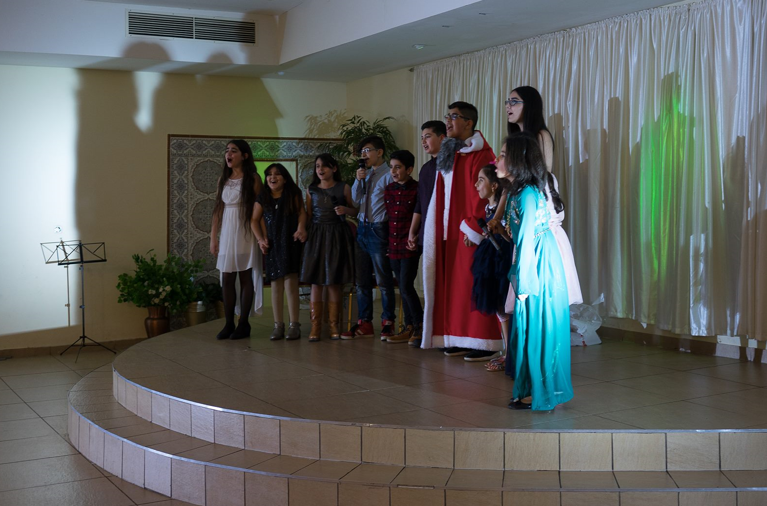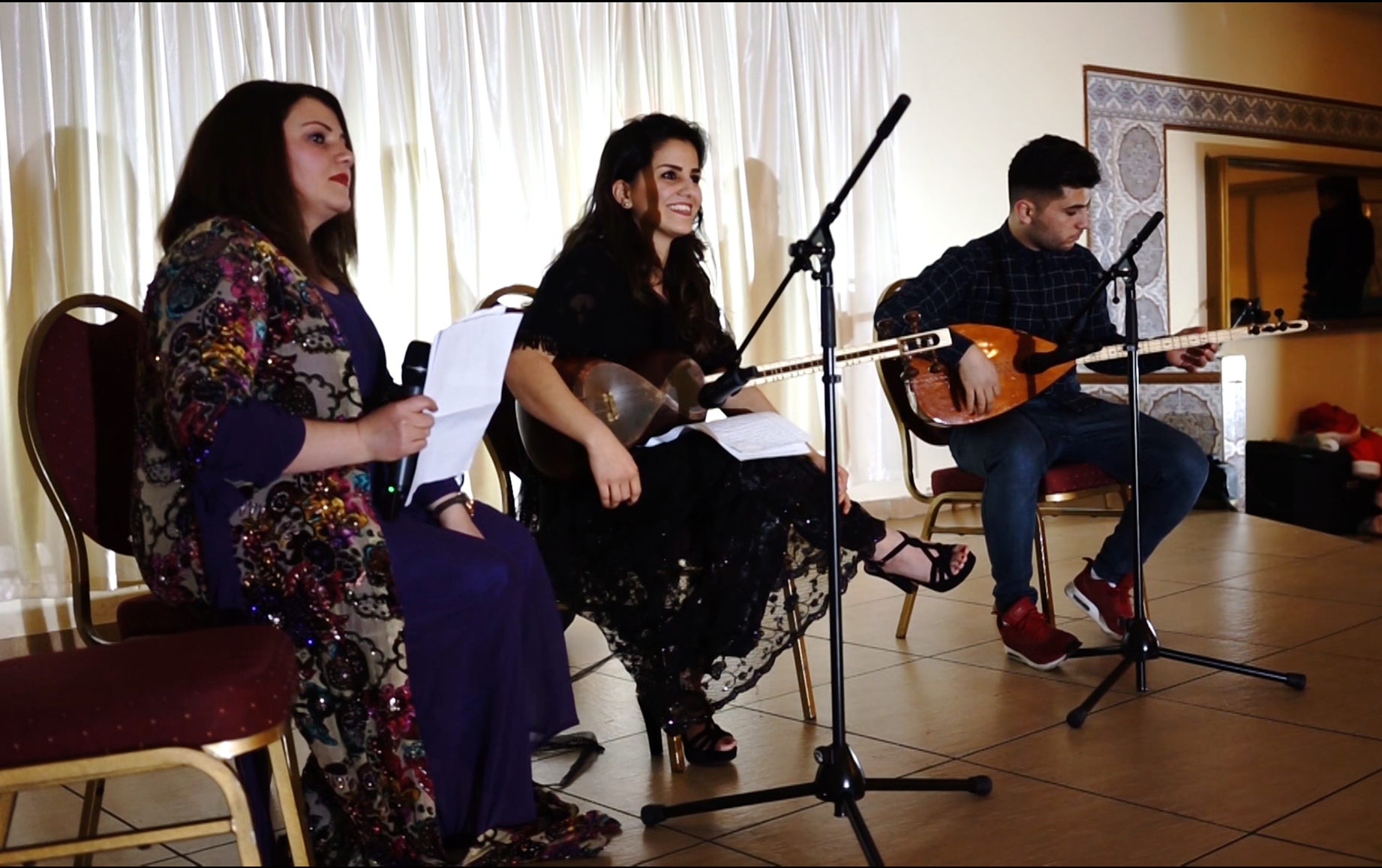 Eine professionelle Musik- und Theaterpädagogin unterstützte die Gruppe in den Vorbereitungen. Ein Schwerpunkt waren zwei kleinere Theateraufführungen, die einstudiert wurden. Passend zur Jahreszeit befasste sich das erste Theaterstück mit dem Thema Weihnachten. Bei dieser kleinen Aufführung waren es vor allem die Jüngeren, die sich mit Spaß und Kreativität einbrachten. Auf lustige Weise wurde das Weihnachtsfest aus kurdischer Perspektive dargestellt. Was ist Weihnachten? Worum geht es da? Macht man da nur mit, um Geschenke zu bekommen? Viele Mitglieder des KSJD, wie auch die an dem Projekt teilnehmenden Geflüchteten, sind sunnitische Muslime oder gehören der jessidischen Minderheit an. Und doch haben viele der hier in Deutschland lebenden Kurden den Brauch übernommen, sich an Weihnachten gegenseitig zu beschenken. Mit Witz und Selbstironie stellten die jungen Schauspielerinnen und Schauspieler das Weihnachtsfest aus kurdischer Sichtweise vor.