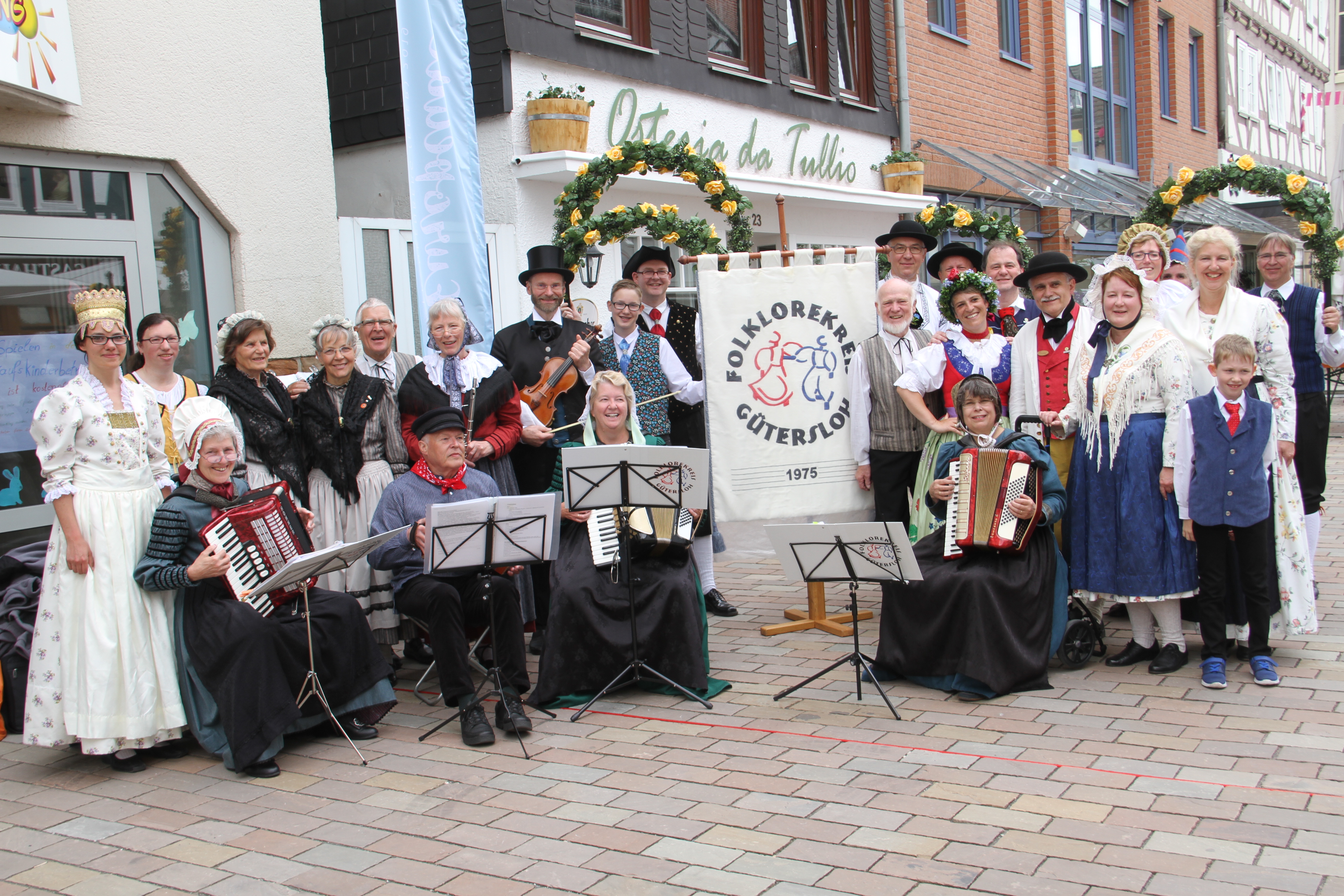 Aus Anlass des 50-jährigen Jubiläums der Städtepartnerschaftsvereinigung hatte Mitte Juni die Stadt Frankenberg in Hessen zur Mini-Europeade eingeladen. Unter den vielen Gruppen war auch der Folklorekreis Gütersloh. Die Musiker und Tänzer der djoNRW-Gruppe reisten am Donnerstag und Freitag an. Ein ganzes Wochenende standen Folklore, Musik und Tanz auf dem Programm. Aber auch das Thema Europa spielte eine große Rolle. So wurden in der Ederberglandhalle einige interessante Workshops und Vorträge über Europa und seine Zukunft angeboten.