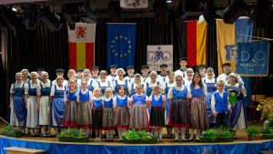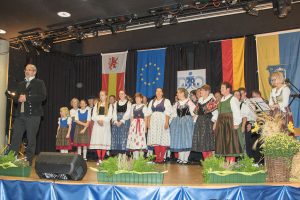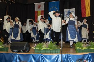 Der Folklorekreis Eurode sang unter der Leitung von Christian Stankewitz zunächst den Satz „Schön ist die Welt“ gefolgt von einer Neufassung „Ein kleines Stück Musik“ und der Europahymne „Freude schöner Götterfunken“. Rund ging es dann bei den Volkstänzen „Rheinländer zu Dreien“, dem „Sonderburger Doppelachter“ und natürlich dem „Klompentanz“.