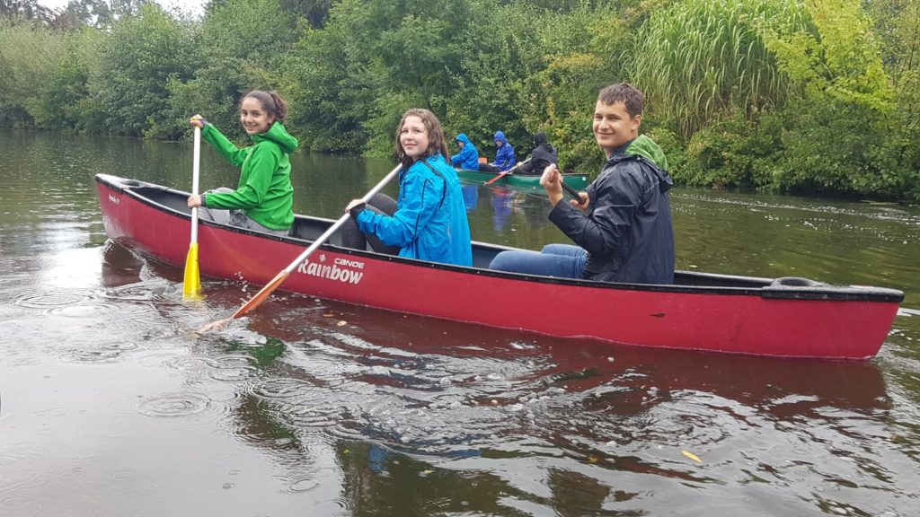 Beim zweiten Abenteuer, den „KanuKanuten“, haben wir uns nach einer kleinen Stärkung beim gemeinsamen Mittagessen auf die Kanus gemacht. Unsere Ausrüstung: Ein Gepäckfass, ein Paddel für jeden, eine Einweisung über die Nutzung und natürlich das Kanu, welches wir durch gemeinsames Anpacken ins Wasser setzten. In der Rollenverteilung in den Kanus, die im Vorfeld gemeinsam geklärt wurde, ging es in Teams los und wir fuhren auf der Werse in Richtung Entdeckung und Abenteuer. Das wechselnde Wetter von schüttendem Regen und strahlender Sonne machte diese Reise besonders anstrengend, aber auch spannend, da man so in allen Wetterlagen neue Erfahrungen sammeln konnte. Insgesamt hat das Kanufahren vielen ein nasses, aufregendes und zusammenschweißendes Erlebnis beschert, welches sie sicher mit positiver Energie weitertragen.