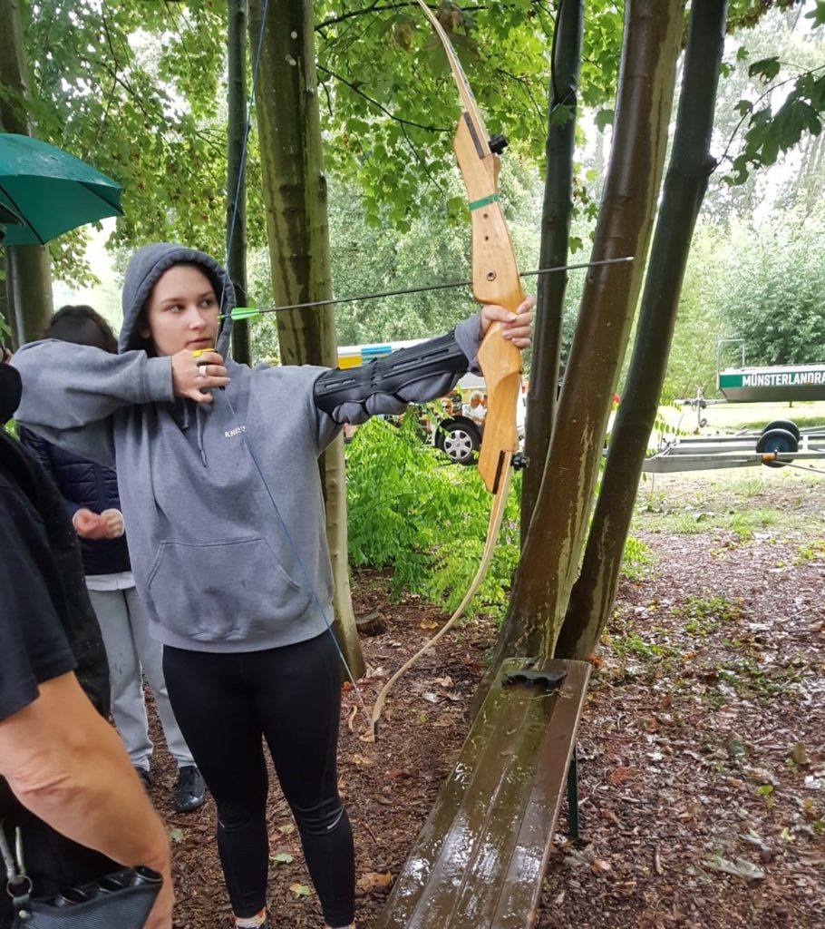 Im ersten Abenteuer „Robin Hood“ wurden wir durch eine Theorieeinheit mit den Bögen vertraut gemacht und haben direkt an den Zielscheiben unser Können in die Tat umgesetzt. Anfangs waren die Bogenschüsse noch verbesserungswürdig, aber mit etwas Übung wurden wir zu richtigen Meisterschützen, sodass wir direkt in die nächste Stufe bekamen – das Ballonhasen-Schießen, keine Sorge, dabei wurde kein Tier verletzt, da es sich lediglich um Ballons handelte. Während des Bogenschießens haben wir uns zwischendurch Tipps gegeben und uns gegenseitig für das beste Ergebnis geholfen, die Jüngeren haben die Älteren unterstützt und die Älteren die Jüngeren. Durch Konzentration und die Sammlung innerer Ruhe konnten bei diesem generationsübergreifenden Projekt alle das Bogenschießen erlernen und ausprobieren! Insgesamt hat es eine Menge Spaß gemacht und hat viele Leute dazu motiviert, mehr solche tollen Sportarten auszuprobieren und gemeinsam zu meistern.