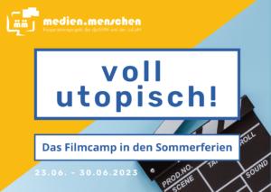 Du hast Interesse an Film und Medien, am Theaterspielen und daran Neues auszuprobieren, kreativ zu sein und neue Leute kennenzulernen? Dann ist „voll utopisch!“, das Filmcamp der JuCoM und djoNRW in den Sommerferien, ganz bestimmt etwas für dich!